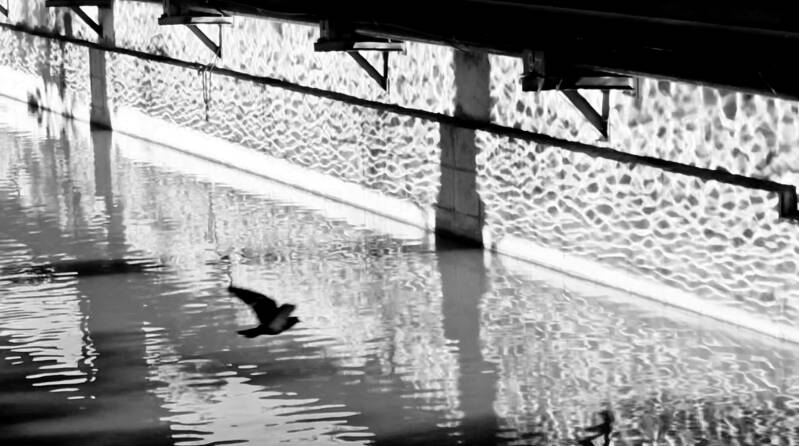The reflection of light on the waters of the filthy Kifisos River, slightly stirred by the wind, forming on the concrete wall a perfect pattern like graffiti.
